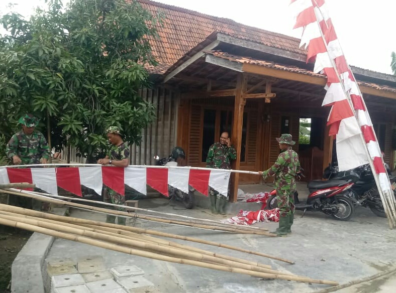 Umbul-umbul untuk Upacara Penutupan TMMD sudah jauh-jauh hari dipersiapkan.