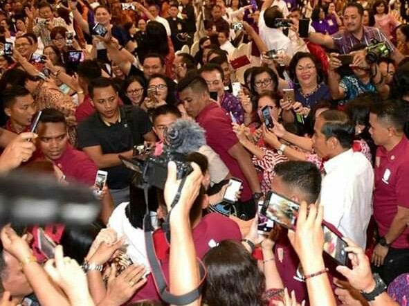 Minut, detiKawanua.com – Sosok Presiden RI Joko Widodo memang spesial di hati masyarakat Sulawesi Utara. Betapa tidak, iring-iringan mobil kepresidenan yang ditumpangi Jokowi harus terhenti sembilan kali lantaran dicegat ribuan warga ketika akan menghadiri silaturahmi bersama peserta Konferensi Gereja dan Masyarakat (KGM) X Persekutuan Gereja-gereja Indonesia (PGI) di Sutan Raja Convention Centre, Kabupaten Minahasa Utara, Minggu (31/03) malam. Warga sangat antusias menyambut kedatangan Jokowi bersama Ibu Negara Iriana sejak keluar dari Bandara Sam Ratulangi Manado hingga lokasi acara.
