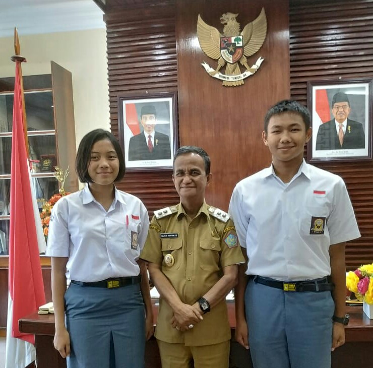 Tahuna, detikawanua.com – Pemkab Sangihe kembali mengirim 2 siswa mengikuti seleksi Pasukan Pengibar Bendera (Paskibraka) tingkat nasional di Manado. Kedua siswa, Misel Gunter dan Johanis Lolaro yang sama-sama berasal dari SMA Negeri I Tahuna, sebelum bertolak ke Manado, Selasa (26/3) kemarin, menyempatkan diri bertemu Wakil Bupati Helmud Hontong SE, diruang kerjanya