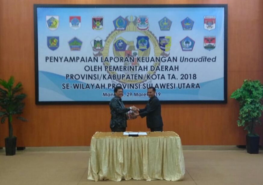 Boltim, detiKawanua.com – Bupati Bolaang Mongondow Timur (Boltim) melalui Sekretaris Daerah (Sekda) Ir. Hi Muhammad Assagaf menyerahkan Laporan Keuangan Pemerintah Daerah (LKPD) Unaudited Tahun Anggaran 2018 kepada Kepala Perwakilan Badan Pemeriksa Keuangan (BPK) RI Sulawesi Utara (Sulut), Tangga Muliaman Purba, di Kantor BPK Manado, pada Jumat (29/3/2019).