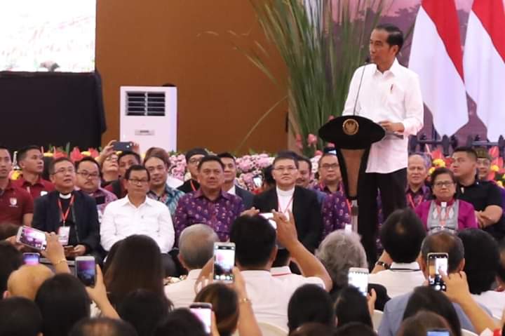Manado, detiKawanua.com – Kunjungan kerja kenegaraan Presiden RI Joko Widodo (Jokowi) bersama Ibu Negara, Iriana Joko Widodo dan rombongan di Sulawesi Utara (Sulut) pada Minggu (31/03) diantaranya menghadiri sekaligus silaturahmi pada kegiatan Konferensi Gereja dan Masyarakat (KGM) X Persekutuan Gereja-Gereja Di Indonesia (PGI) tahun 2019 yang bertempat di Hotel Sutan Raja Kabupaten Minahasa Utara (pada malam tadi) yang juga didampingi Gubernur Sulut, Olly Dondokambey, dan Wakil Gubernur, Steven Kandouw (OD-SK).