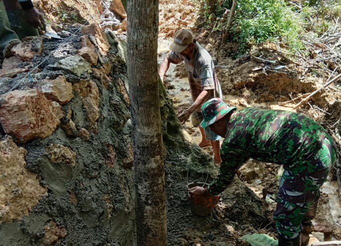 Jelang penutupan TMMD, Satgas dan warga terus mengebut pengerjaan talud.