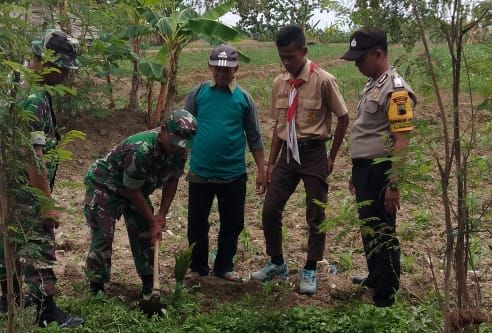 Satgas dan warga menanam bibit pohon kelapa di Desa Jurangjero.