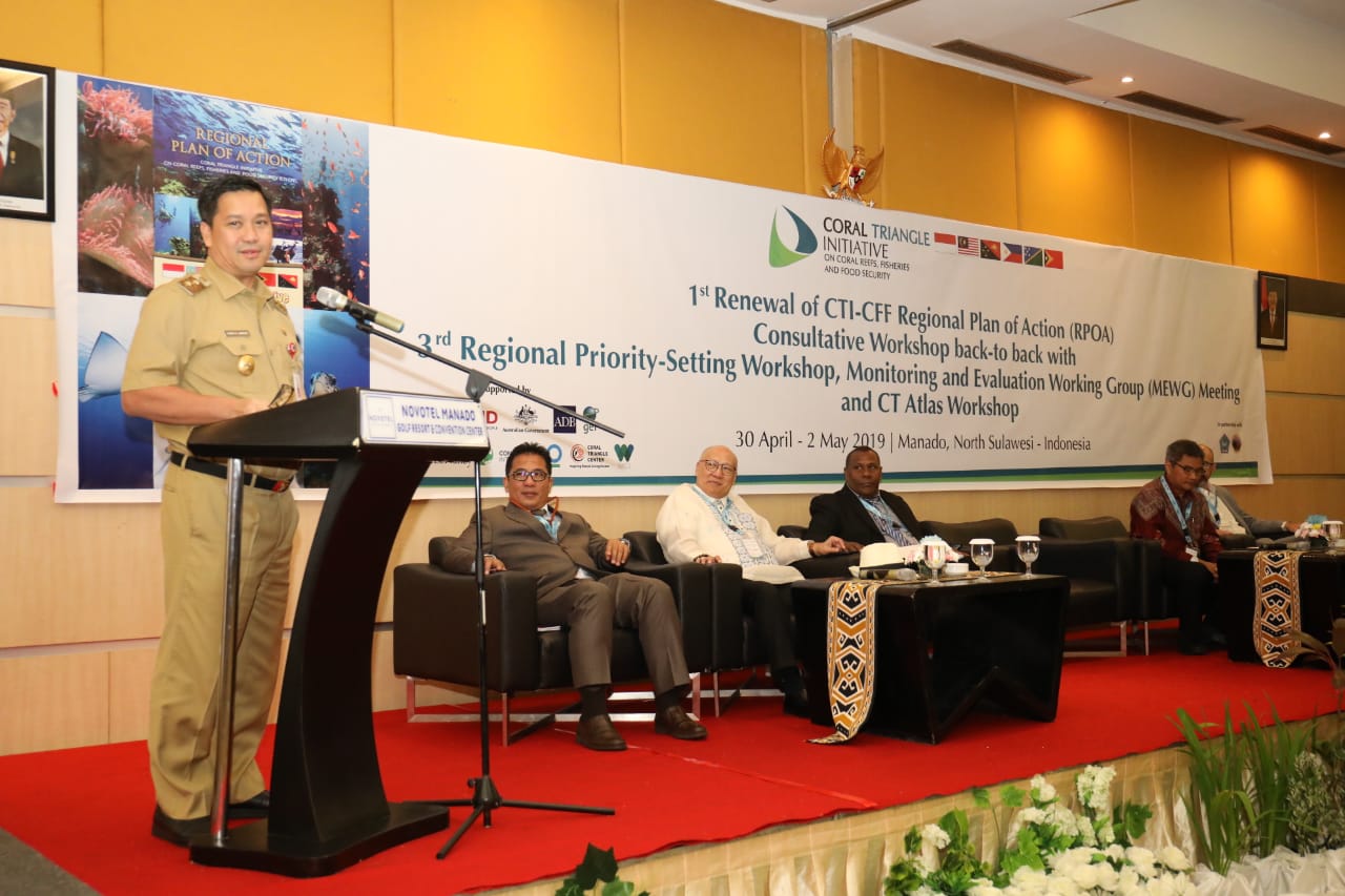 Manado, detiKawanua.com – Wakil Gubernur Sulut, Steven Kandouw membuka secara resmi agenda 1st Renewal of CTI-CFF Regional Plan of Action (RPOA) Consultative Workshop back to back with 3rd Regional Priority-Setting Workshop, Monitoring and Evaluation Working Group (MEWG) Meeting and CT Atlas Workshop di Manado, Selasa (30/4).