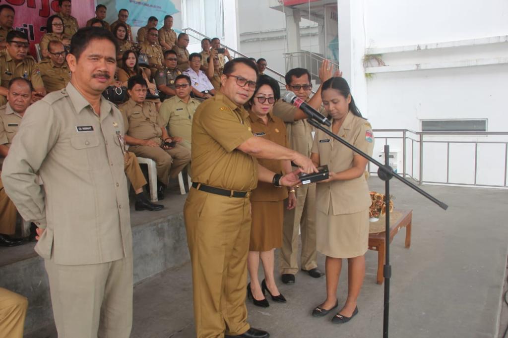 | Sekretaris Daerah Kabupaten Mitra saat mencanangkan penererapan E-Kinerja bersamaan dengan apel perdana bulan April |