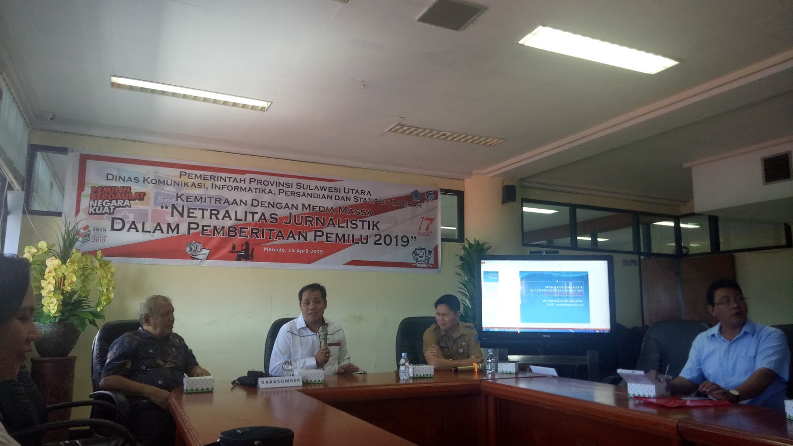 Manado, detiKawanua.com – Tinggal sehari pelaksanaan Pemilu 2019 (Pilpres dan Pileg) pada tanggal 17 April, oleh Dinas Komunikasi Informatika, Persandian dan Statistik (DKIPS) Sulut, Senin (15/04) siang tadi menggelar pertemuan kemitraan bersama media di Kantor Gubernur yang dihadiri pihak Bawaslu Sulut, dengan tujuan pelaksanaan melalui Sekertaris KIPS Sulut, Febe Damogala bahwa, kegiatan ini menjadi pemahaman bersama dalam keterbukaan informasi, sebagaimana soal transparansi pemberitaan dalam mengawal pembangunan daerah bersama pemerintahan. Dalam hal ini juga sekaligus bisa saling sharing bertukar informasi, sehingga dengan agenda penting ini bisa dalam penetralisir bagi masyarakat melalui pemberitaan.