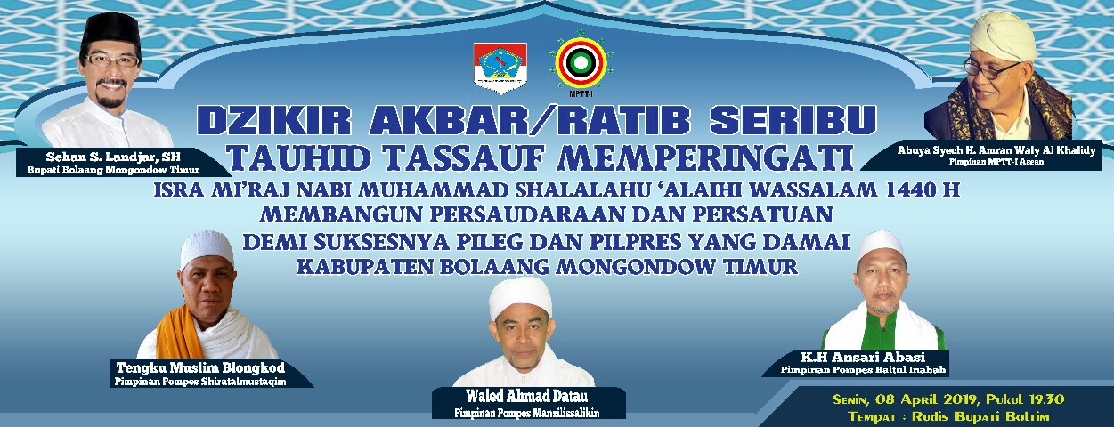“Pemda Boltim akan menggelar dzikir akbar dalam rangka memperingati Isra’ Mi’raj Nabi Muhammad SAW 1440 Hijriah, pada Senin pekan depan. Untuk lokasi dzikir dipusatkan di rumah dinas Bupati Boltim, Sehan Salim Landjar  SH,” jelas Egam siang tadi