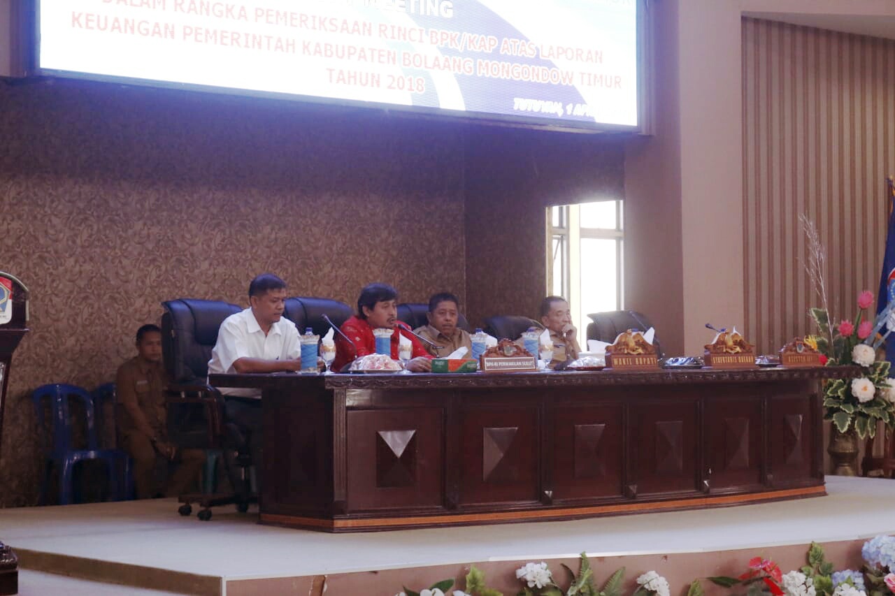 Pemeriksaan kali ini berdasarkan surat tugas, yang akan berlangsung kurang lebih 45 hari ke depan. Menyusul dengan dilaksanakannya Entry Meeting antara Pemkab Boltim dengan BPK, yang berlangsung di gedung aula lantai III kantor Bupati, pada Senin (01/04/2019).