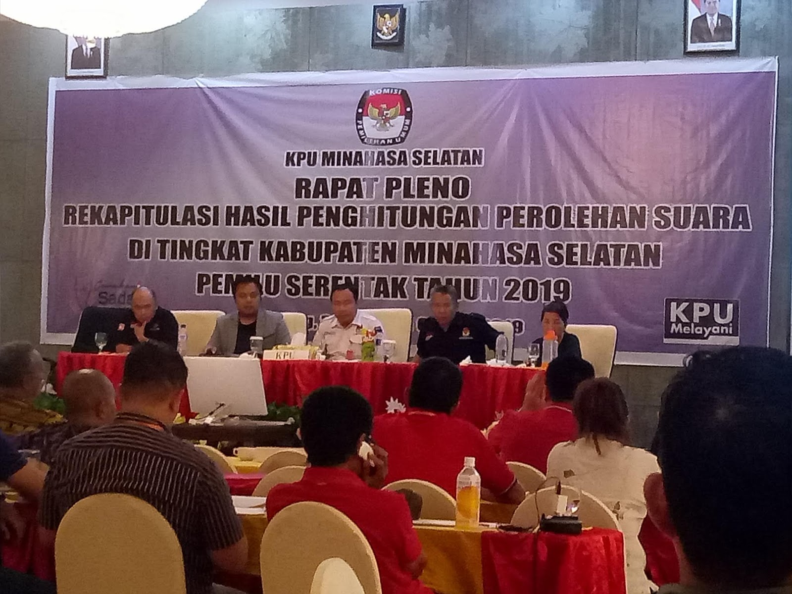 MINSEL, DETIKAWANUA.COM – Berakhir sudah Pleno Rekapitulasi Perhitungan suara Calon Presiden dan Wakil Presiden , DPR RI , DPD, DPRD Provinsi dan DPRD Kabupaten oleh Komisi Pemilihan Umum (KPU) Kabupaten Minahasa Selatan (Minsel) Minggu (5/5/2019), sesuai jadwal ditutup Pukul 24.00 wita atau jam 12 malam, dan selanjutnya tinggal Penandatanganan Saksi partai dan KPU Kabupaten.