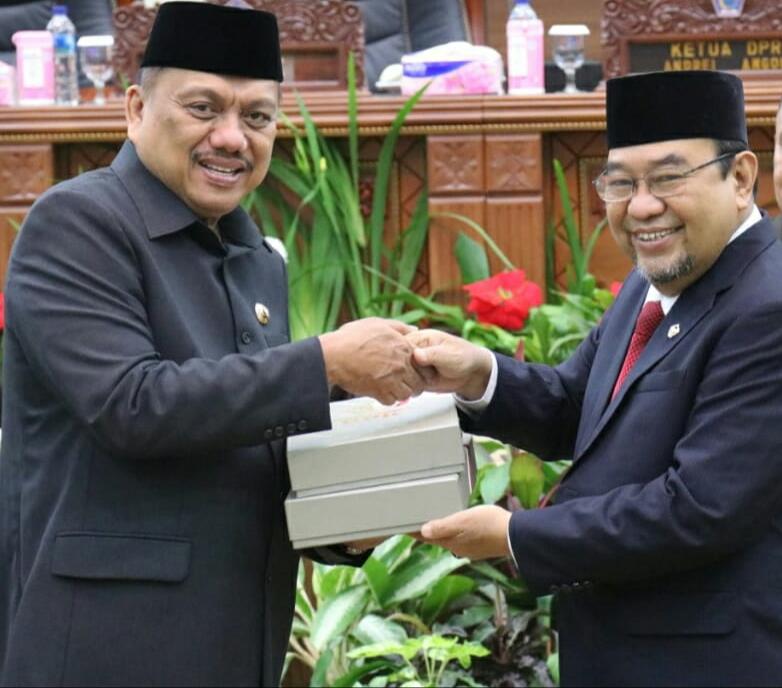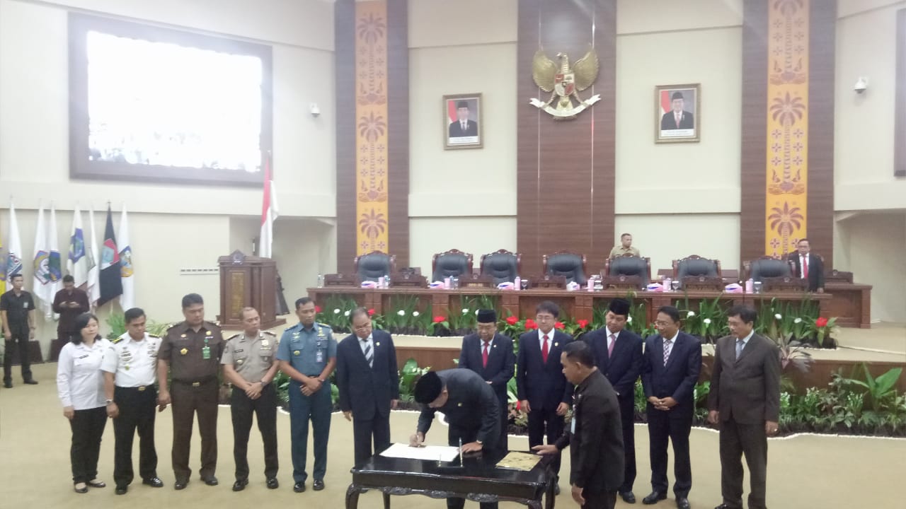 Manado, detiKawanua.com – Pemerintah Provinsi Sulawesi Utara untuk ke-5 kalinya secara berturut-turut atau Quintrick, meraih predikat opini Wajar Tanpa Pengecualian (WTP) dari Badan Pemeriksa Keuangan Republik Indonesia (BPK RI), yang kali ini atas laporan keuangan Pemprov Sulut tahun 2018. Hal tersebut diumumkan secara terbuka dan diserahkan langsung oleh anggota VI BPK RI, Harry Azhar Azis kepada Gubernur Olly Dondokambey, SE berdasarkan Laporan Hasil Pemeriksaan (LHP) dan disaksikan Ketua DPRD Sulut Andrei Angouw bersama para anggota dewan pada rapat sidang paripurna istimewah yang berlangsung di Kantor DPRD Sulut, Selasa (27/5/2019).