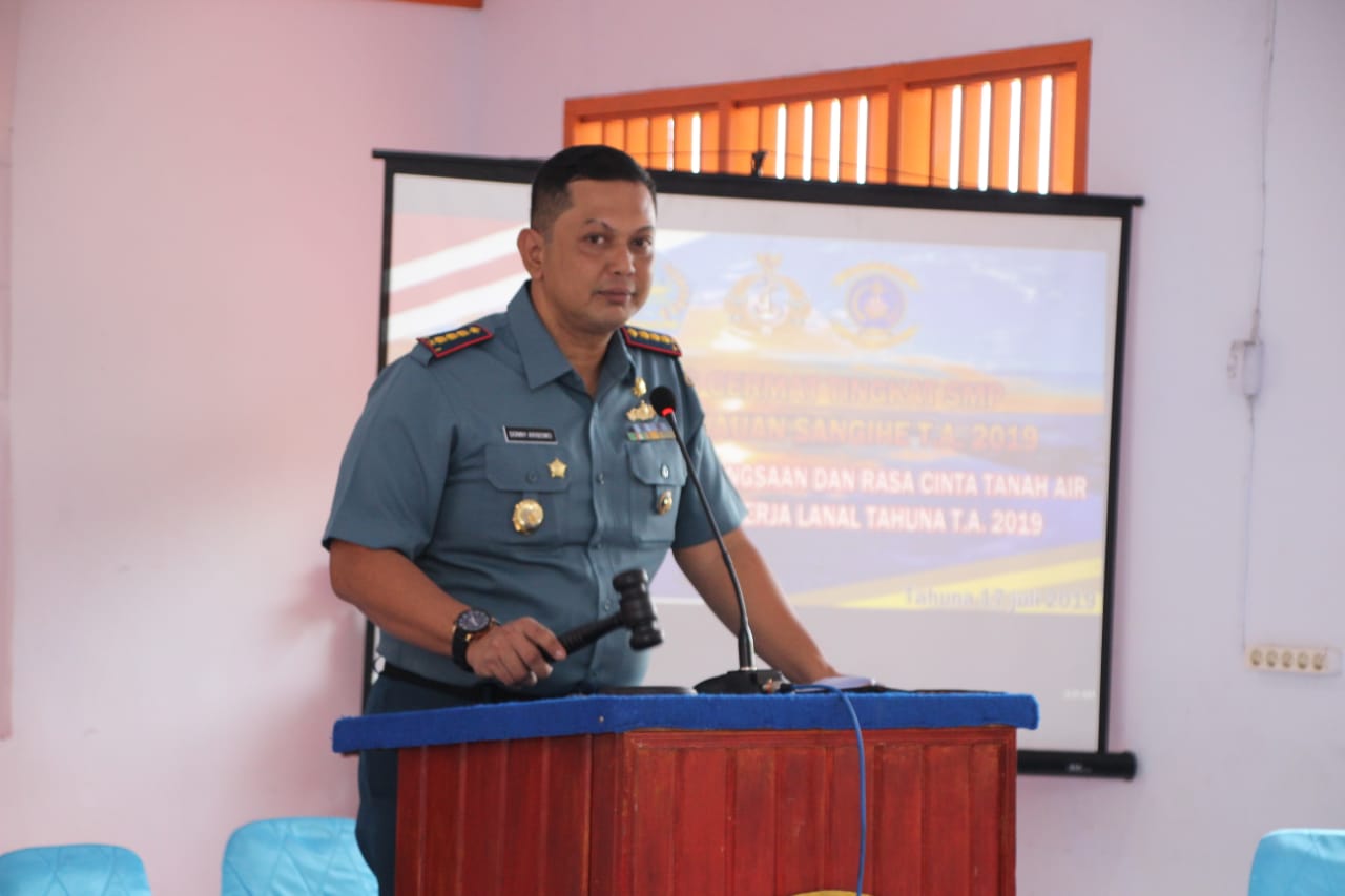 DanLanal Tahuna Kolonel Laut (P) Donny Aribowo ketika membuka Cerdas Cermat Wawasan Kebangsaan Siswa SMP tingkat Kabupaten Sangihe tahun 2019, Kamis (17/6/2019) mengakui wawasan kebangsaan itu sangat strategis bagi generasi muda, terutama kalangan pelajar. Karenanya, untuk meningkatkan minat mereka dalam mendalami ilmu-ilmu berwawasan kebangsaan