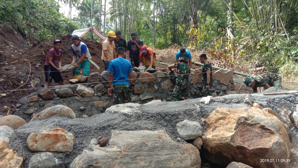 Bitung, detiKawanua.com – Pasca dibukanya kegiatan TNI Manunggal Membangun Desa (TMMD) ke-105 di wilayah Kodim 1310/Bitung (Rabu pagi), oleh Satgas pada hari pertama Kamis (11/7/19) di Kelurahan Dua Sudara Desa Apela 1 dan Desa Apela 2 Kecamatan Ranowulu Kota Bitung dibawah pimpinan Komandan Satuan Setingkat Kompi (Dan SSSK) Lettu Inf Julen Tonny Kasiaheng langsung action mengenjot pekerjaan yang menjadi sasaran fisik yang diantaranya yakni pembuatan Plat Ducker.