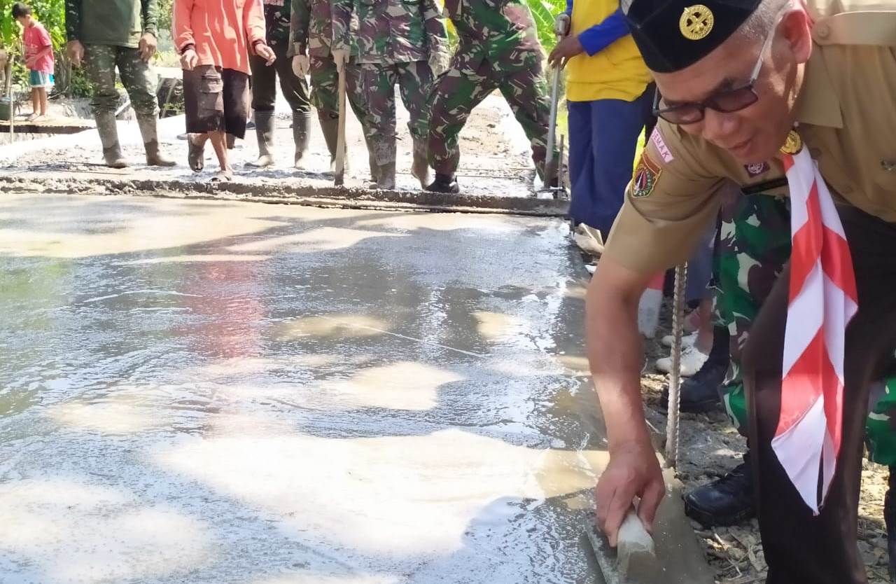 Betapa tidak, mendadak Bupati Demak, H.M. Natsir meninjau lokasi, dan bahkan tanpa ada yang mengkondisikan, orang nomor satu di kota wali itu meminjam gosokan dari kayu lantas digunakan untuk menghaluskan pengecoran jalan yang baru dikerjakan oleh para Satgas.