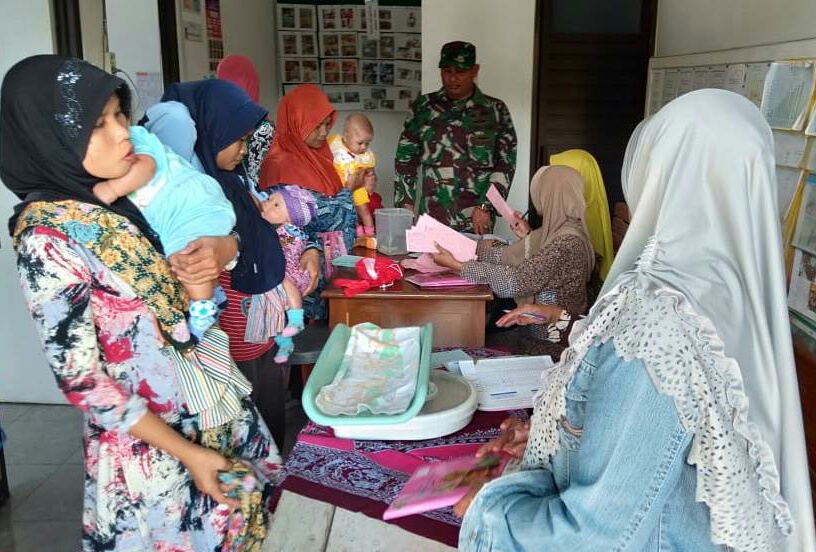 Seperti halnya di sela-sela bekerja di sasaran fisik, sejumlah anggota Satgas TMMD menyempatkan diri untuk membantu pelayanan Posyandu di Poliklinik Desa (Polindes) Kalikondang.