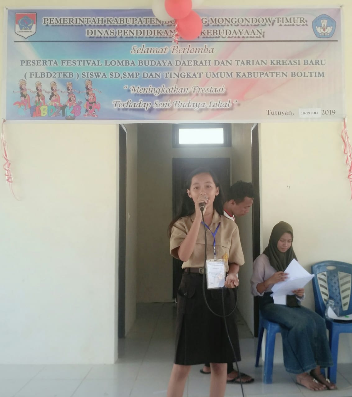 “Menumbuhkan sebagian sikap kemandirian, serta meningkatkan kemampuan peserta didik dalam bersosialisasi dengan bahasa lokal secara objektif serta transparan kepada para peserta. Karena, salah satu pola pembinaan pendidikan bidang seni dan budaya lokal di Bolaang Mongondow Timur, kita bisa capai dengan suksesnya kegiatan ini, sekaligus membawa manfaat bagi daerah Boltim yang kita cintai,” terang Yusri.