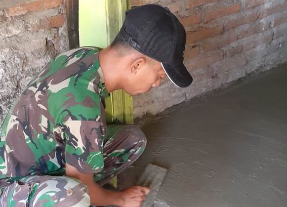 Seperti saat  mengerjakan lantai RTLH milik Zaeni (75), salah satu dari 14 warga Desa Kalikondang yang rumahnya direhab bersamaan TMMD, begitu lihai dan cekatan memplester lantai.