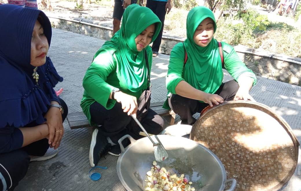 Istri Dansatgas TMMD Kalikondang itu, ikut serta menyiapkan makan siang untuk anggota Satgas dan warga yang bekerja keras menyelesaikan berbagai pembangunan di Desa Kalikondang.
