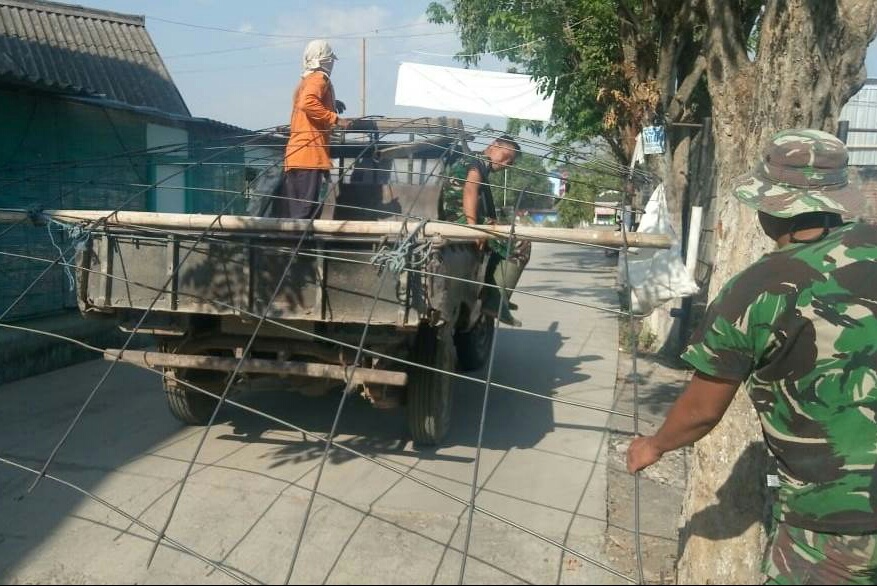 Pasiter Kodim Demak, Kapten Inf Mulyadi terus mengkondisikan pelangsiran anyaman besi.