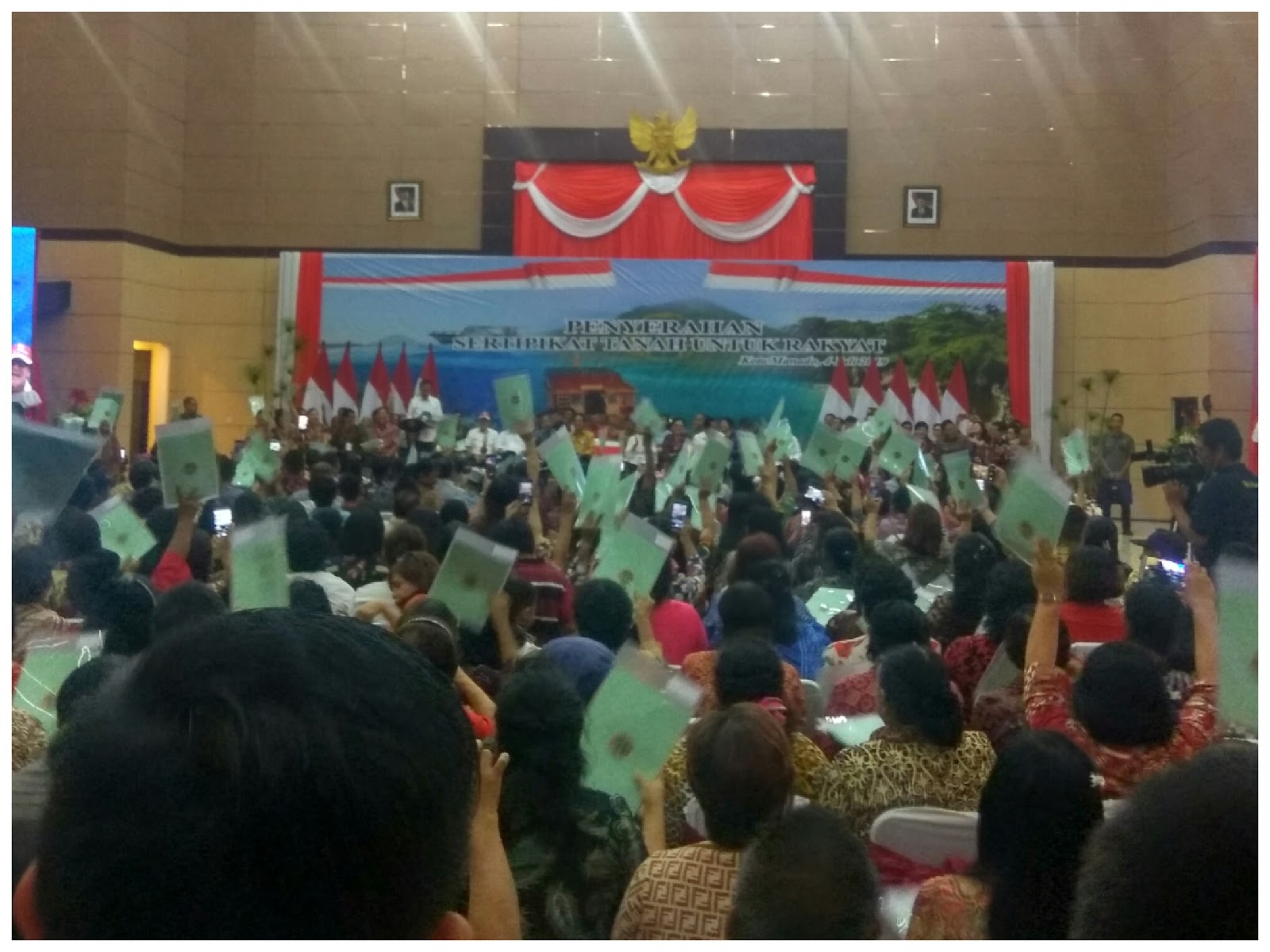 Pembagian sertifikat tanah turut dihadiri Ibu Negara Iriana Joko Widodo, Menko Perekonomian Darmin Nasution, Menteri PUPR Basuki Hadimuljono, Menteri ATR/BPN Sofyan Djalil, Menteri Hukum dan HAM Yasonna Laoly, Menteri Perhubungan Budi Karya Sumadi, Sekretaris Kabinet Pramono Anung, Ketua TP-PKK Sulut Rita Maya Dondokambey – Tamuntuan, Wakil Gubernur Sulut Drs. Steven Kandouw, Wakil Ketua TP-PKK Sulut, dr Devi Kandouw-Tanos, Sekprov Edwin H. Silangen, Ketua DWP Sulut Ivonne B. Silangen-Lombok, Ketua BPMS GMIM Pdr. Hein Arina, Kakanwil ATR/BPN Sulut Freddy A. Kolintama dan para pejabat Pemprov Sulut.