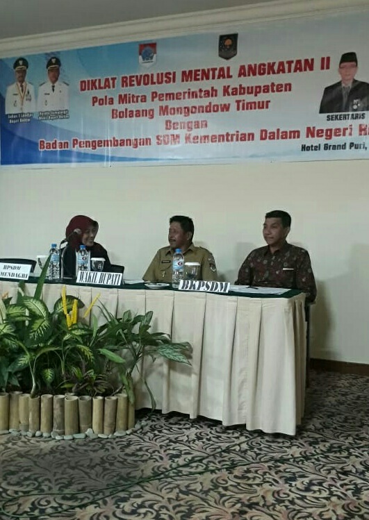 Hal itu, seperti disampaikan oleh Wakil Bupati Bolaang Mongondow Timur (Boltim), Drs. Rusdi Gumalangit pada pembukaan kegiatan Diklat Revolusi Mental Aparatur Sipil Negara (ASN) Boltim, di Hotel Grand Puri Manado pada Senin (08/07).