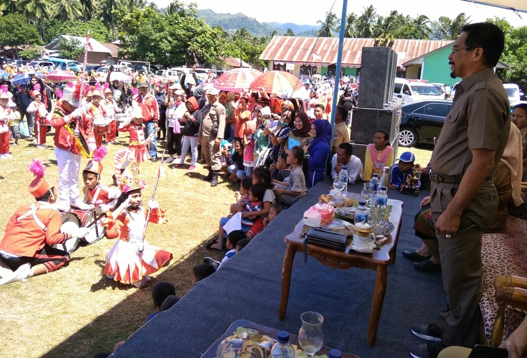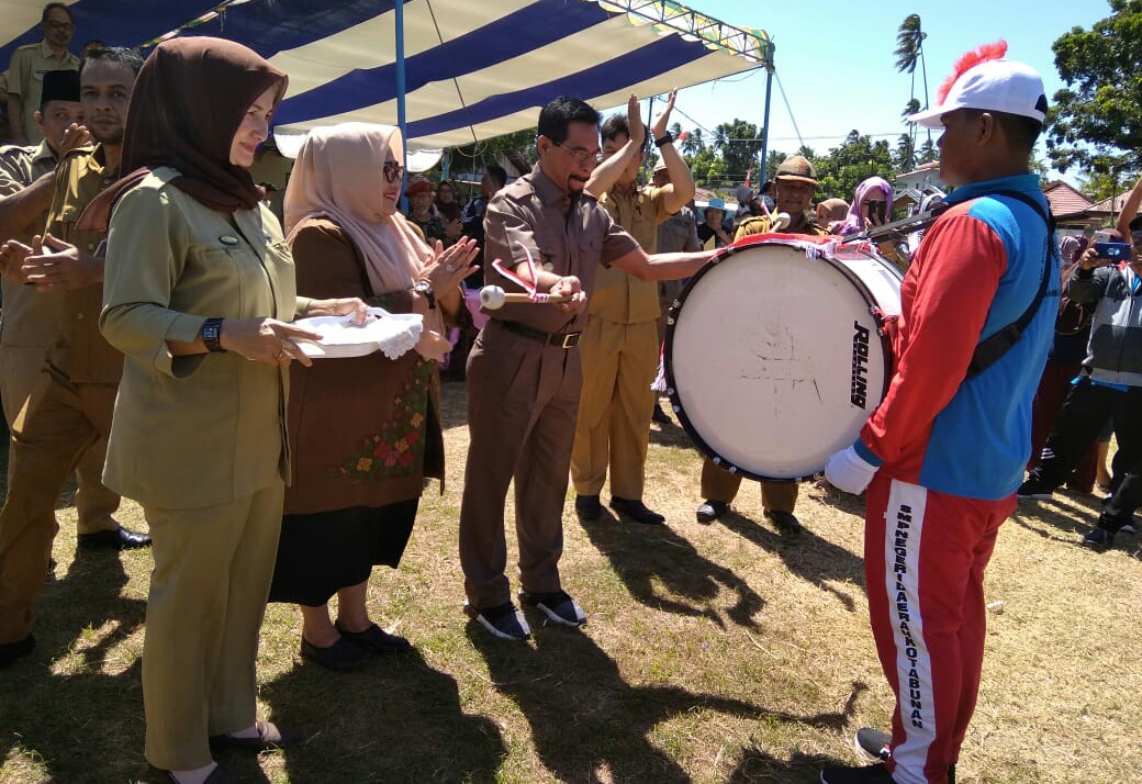 Bupati Boltim saat membuka Lomba Drum Band dan Pawai Sekolah Berprestasi.