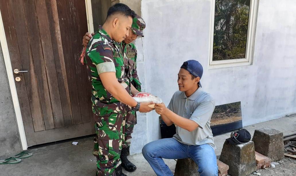 DEMAK, detiKawanua.com – Di ujung gelaran TMMD Reguler ke-105 Kodim 0716/ Demak, berebagai kegiatan kemanuasiaan dilakukan oleh sejumlah anggota Satgas TMMD. Salah satunya Kopka Arifin yang memberi bantuan beras kepada salah satu warga Desa Kalikondang, Kecamatan Demak Kota (desa sasaran TMMD Reguler Kodim Demak -Red), Mijan (38).