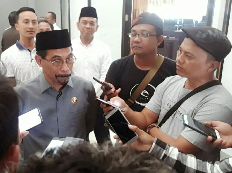 Bupati Boltim Sehan Landjar tengah dikonfirmasi sejumlah awak media, Rabu (31/07).