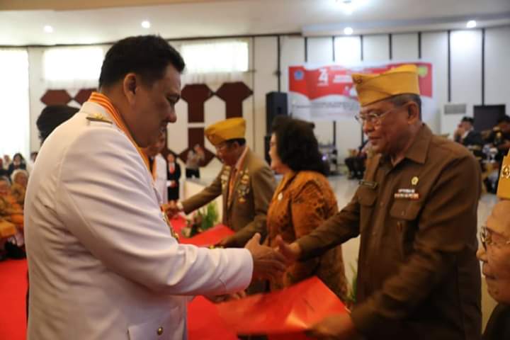 Dimana sesuasi itu Gubernur Olly Dondokambey dan Wagub Kandouw melangsungkan resepsi kenegaraan bersama para Legiun Veteran di Aula Eks Kantor DPRD Sulut di Sario.