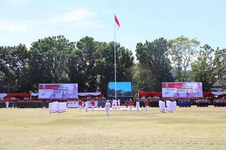 Agenda besar rutin tahunan tersebut dipimpin langsung Gubernur Sulut Olly Dondokambey, SE selaku Inspektur Upacara (Irup) dihadiri jajaran Forkopimda, Ketua DPRD Andrei Angouw, Ketua TP PKK Sulut Ir. Rita Maya Dondokambey-Tamuntuan, Wakil Gubernur Drs Steven O.E. Kandouw.