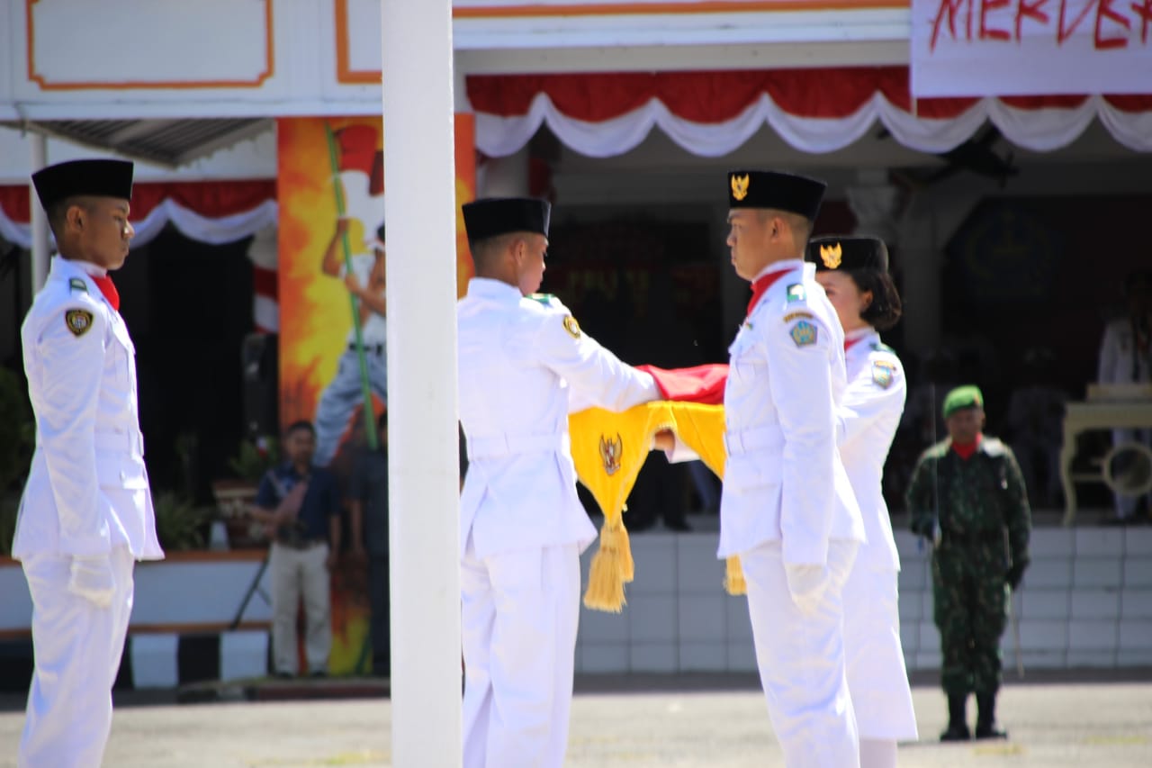 Bupati Jabes E Gaghana SE ME bersama Wakil Bupati Helmut Hontong SE mengikuti Upacara Peringatan Detik-detik Proklamasi Kemerdekaan ke-74.