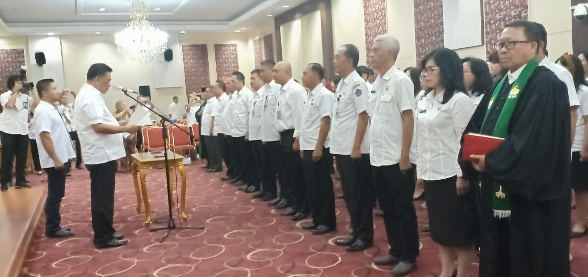 Manado, detiKawanua.com – Pelaksanaan rotasi jabatan merupakan hal biasa dalam struktur organisasi pemerintahan, dalam rangka mempercepat jalannya roda Pemerintahan Provinsi Sulut. Demikian disampaikan Gubernur Sulut Olly Dondokambey ketika mengambil Sumpah Jabatan 47 Pejabat Struktural Lingkup Pemprov Sulut, pada Rabu (28/08) sore tadi di Kantor Gubernur.