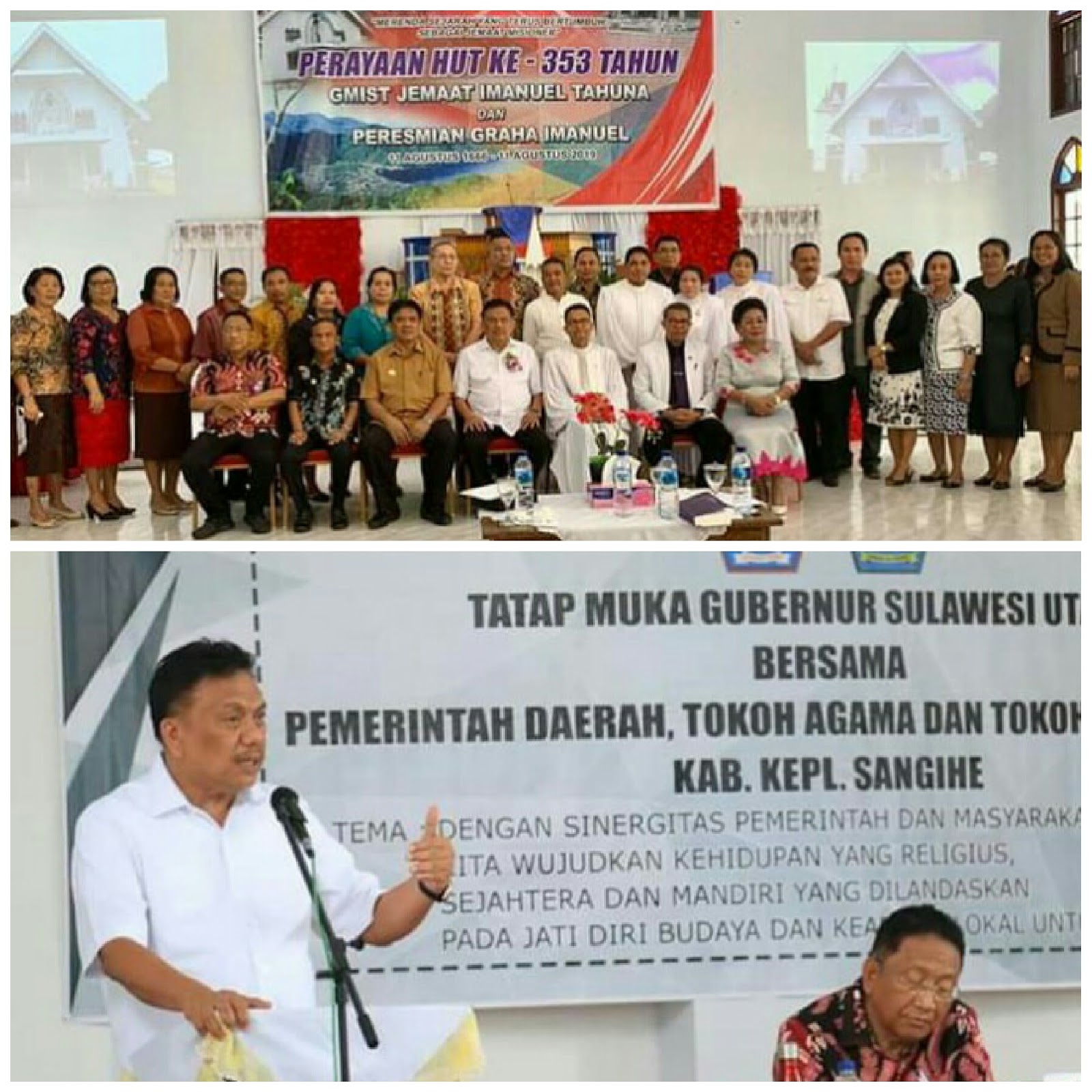 “Atas nama Pemerintah Provinsi Sulawesi Utara (Pemprov Sulut), saya sampaikan selamat atas bertambahnya usia Jemaat GMIST Imanuel Tahuna serta kesuksesannya dalam membangun Graha Imanuel bagi Jemaat,” terang gubernur saat menyampaikan sambutannya pada kesempatan itu.