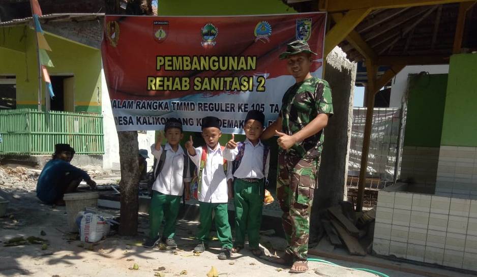 DEMAK, detiKawanua.com – Ini mungkin dikarenakan para Satgas TMMD Reguler ke-105 Kodim 0716/Demak yang pandai mengambil hati anak-anak di desa sasaran, Desa Kalikondang, Kecamatan Demak Kota. Sehingga menjelang berakhirnya TMMD, anak-anak berebut untuk minta foto bareng dengan sosok TNI.