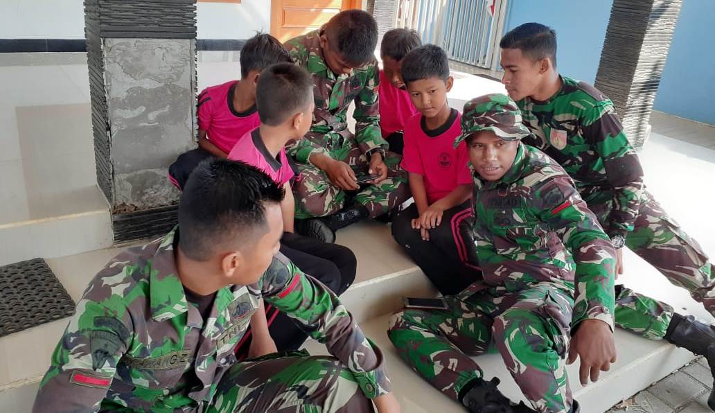 Kini seiring akan berakhirnya TMMD, Prada Adi dan sejumlah Satgas lainnya semakin lengket dengan anak-anak di desa sasaran TMMD.