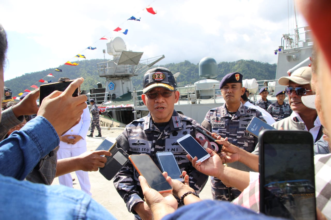 “Pengamanan terhadap pulau terluar antara lain dilakukan dengan gelar operasi pengamanan mengerahkan kapal perang KRI SULTAN NUKU 373 dan pesawat udara patroli maritim, kemudian kami ada lebih kurang dua hingga tiga hari kedepan berada di perairan perbatasan Kabupaten Sangihe – Philipin, selang waktu ini kami mempersilakan bagi warga Kabupaten Sangihe untuk berkunjung di KRI SULTAN NUKU,” ujarnya.