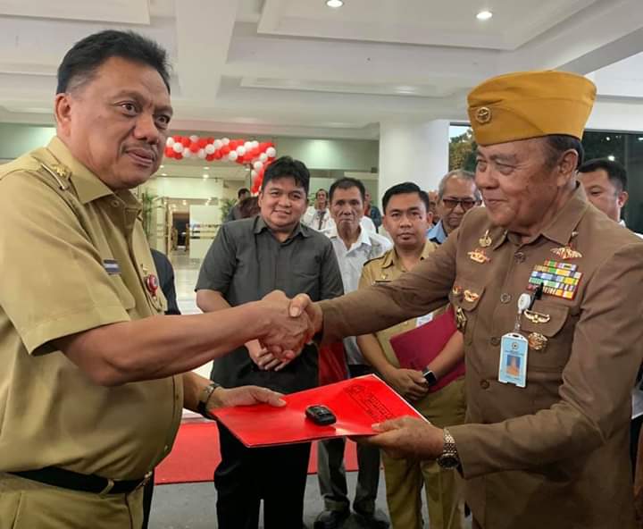 Manado, detiKawanua.com – Realisasikan ucapan dari Gubernur Sulut Olly Dondokambey kepada satuan Legiun Veteran Republik Indonesia (LVRI) Sulut, saat momentum Peringatan HUT Proklamasi RI ke-74 pada Sabtu lalu atas permohonan bantuan mobil operasional sehari-hari LVRI Sulut. Hanya berselang tiga hari kemudian tepatnya Selasa (20/8) sore tadi di Halaman Kantor Gubernur, secara langsung gubernur meyerahkan 1 Unit mobil jenis Toyota Innova 2000 CC keluaran terbaru yang sehari-hari digunakan sebagai kendaraan dinas DB 1.