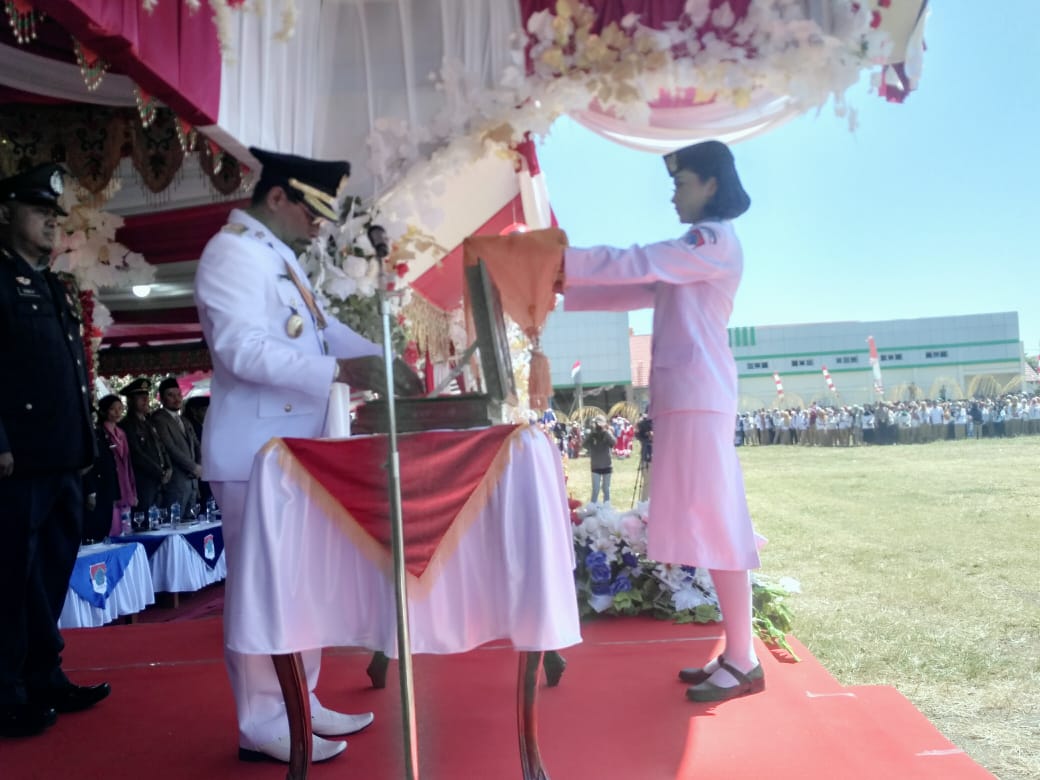Bupati Boltim Sehan Landjar saat menjadi Inspektur Upacara di Peringatan HUT RI ke-74.