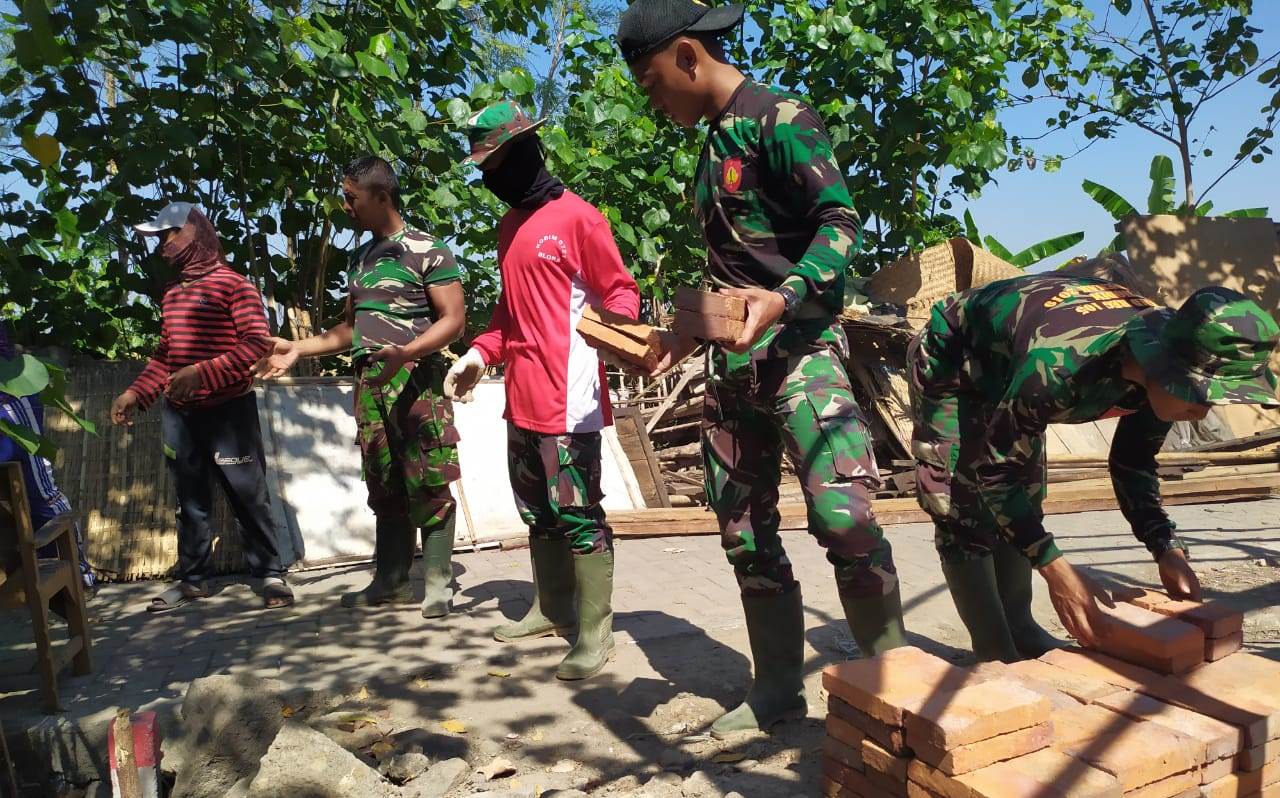 Seperti halnya saat melangsir batu bata untuk keperluan merehab RTLH milik warga desa setempat, begitu batu bata datang diangkut dengan mobil datang ke lokasi, para anggota Satgas dan warga berjejer, dan dengan sistem estafet, dalam waktu sekejap berhasil memindahkan ratusan batu bata sampai ke lokasi RTLH yang akan dibangun.