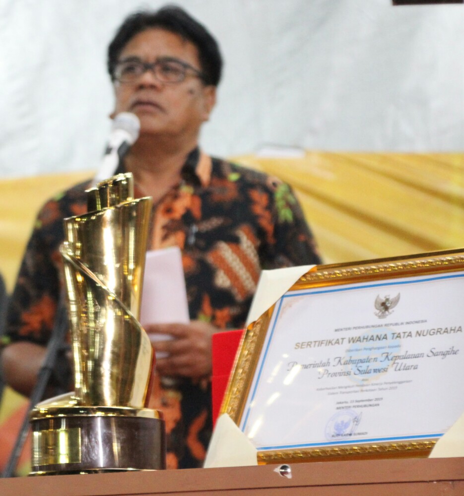Kabupaten Kepulauan Sangihe menerima penghargaan dalam kategori penerima Piala Wahana Tata Nugraha dengan bersama 38 Kabupaten/Kota. Selain  itu Piala Wahana Tata Nugraha Wiratama diserahkan kepada 15 Propinsi. Penghargaan yang diserahkan langsung Menteri Perhubungan bersama Setjen dan Dirjen Perhubungan Darat. Peraih penghargaan ini harus melalui seleksi terhadap 145 Kab/Kota yang menerima sertifikat Wahana Tata Nugraha dan Kabupaten Kepulauan Sanghe terpilih bersama kota Bitung mewakili Sulawesi Utara.