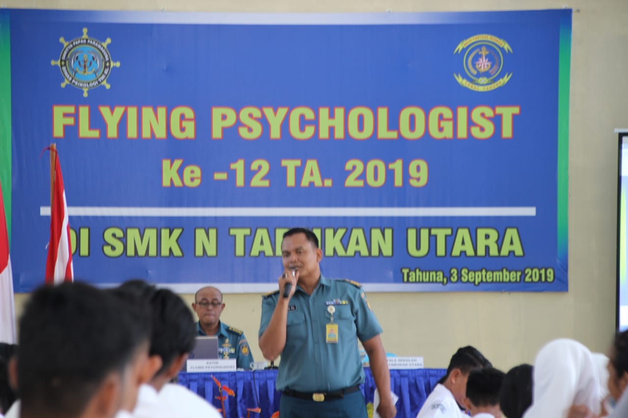 Tahuna, detikawanua.com – TNI AL Tahuna melaksanakan kegiatan Flying Psychologist di Aula SMK Kelautan Tabukan Utara selasa, (3/9/19). Giat yang dilaksanakan ini bertujuan untuk penyegaran dan motivasi kepada seluruh siswa/wi Kegiatan tersebut dihadiri oleh Kolonel Laut (KH) Ahmad Rivai S. Psi. M. PPO. Psikolog, Kasubdin Psiops. Kolonel Laut (KH) Bambang Mulyono. S. Psi. Kasubsi Anevass. Kolonel Laut (KH) Sutrisno Kaur Anerta. Kepala Sekolah SMK Kelautan. Kepala Sekolah SMU Muhammadya Tabukan Utara.
