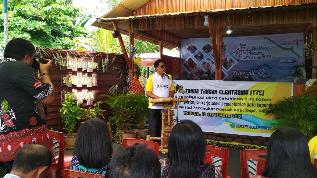 Tahuna, detikawanua.com – Launching Tanda Tangan Elektronic (TTE) dari Dinas Kependudukan dan Pencatatan Sipil bertempat di stand Dinas Dukcapil di lokasi Festival Pesona Sangihe pada Kamis (12/09/19).
