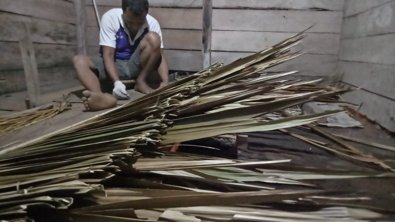 “Adapun bahan yang dibutukan adalah Bambu Patung, Pengikat anyaman (Ginto) dan Daun rumbia, jika bahan – bahan ini lengkap baru dikerjakan dan walaupun ada bahan kalau kondisi cuaca tidak memungkinkan tidak bisa juga,”ungkap Papunas