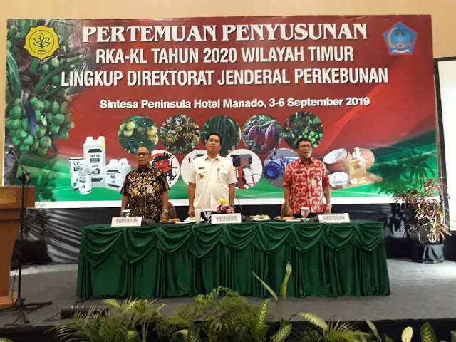 Manado, detiKawanua.com – Dipercayakan sebagai tuan rumah penyelenggaraan Pertemuan Penyusunan Rencana Kerja dan Anggaran Kementerian Negara/Lembaga (RKA-KL) Tahun 2020 Wilayah Timur Lingkup Direktorat Jenderal Perkebunan pada Rabu (04/09) tadi, yang dibuka Direktur Jenderal Perkebunan Kementerian Pertanian Kasdi Subagyono dan dihadiri Wakil Gubernur Sulut, Steven Kandouw beserta serta perwakilan dari 15 provinsi di wilayah timur, yang dilaksanakan di salah satu hotel ternama di Kota Manado.