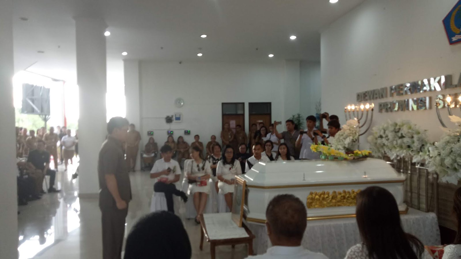 Pelepasan jenazah dipimpin langsung Ketua DPRD Sulut Andrei Angouw yang bertindak sebagai Inspektur Upacara dan dihadiri anggota DPRD Sulut dan jajaran Sekretariat DPRD Sulut, Selasa (22/10) sore bertempat di kantor DPRD Sulut.