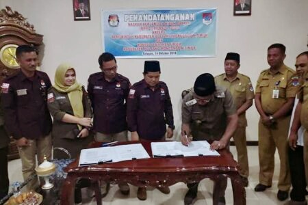 Boltim, detiKawanua.com – Bersama Pemerintah Kabupaten (Pemkab) Bolaang Mongondow Timur (Boltim), Komisi Pemilihan Umum (KPU) Boltim telah menyepakati dan menandatangani Naskah Perjanjian Hibah Daerah (NPHD) untuk Pemilihan kepala daerah (Pilkada) Bupati dan Wakil Bupati, tahun 2020, senilai Rp 17,2 miliar.