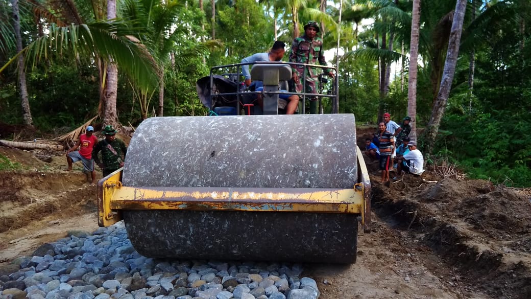 Melalui Danki Satgas Kapten TNI Chb Celcius T Wangka selaku koordinator lapangan mengatakan bahwa penggunaan alat berat sangat dibutuhkan dalam proses pemadatan batu agar terselesaikan dengan cepat dan padat dengan hasil yang maksimal.