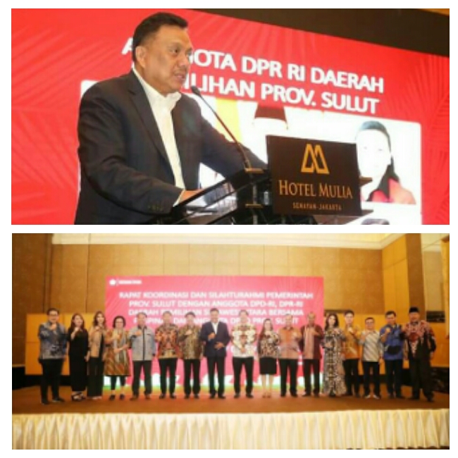 Jakarta, detiKawanua.com – Dalam kesempatan silaturahmi sekaligus rapat koordinasi bersama anggota DPD RI, DPR RI asal Sulut, pimpinan dan anggota DPRD Sulut di Hotel Mulia Senayan Jakarta pada Kamis (17/10/2019), oleh Gubernur Sulut Olly Dondokambey dalam sambutannya mengajak seluruh legislator Sulut untuk menanggalkan ego dan mengawal program pembangunan strategis baik program pembangunan pemerintah pusat maupun pemerintah daerah yang dilaksanakan di Provinsi Sulut.