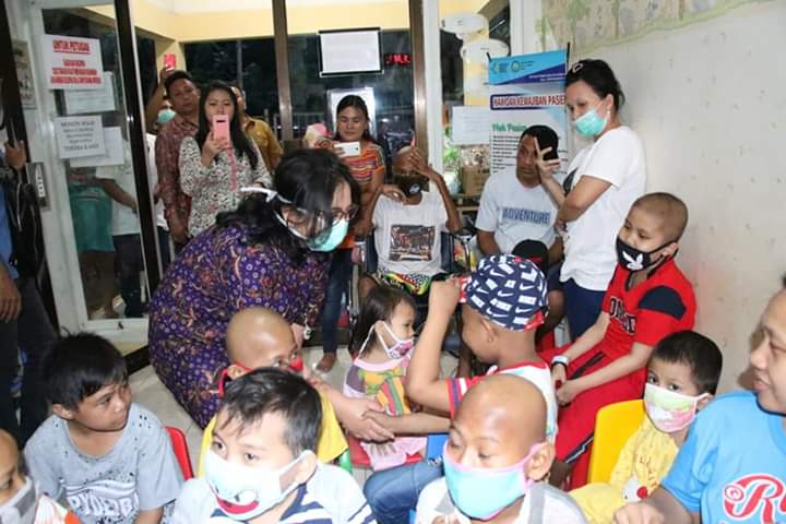 Kedatangan istri Gubernur Sulut dan Kepala Dinas Kesehatan Provinsi Sulut itu, suasana klinik perawatan anak-anak penderita kanker itu menjadi penuh sukacita.