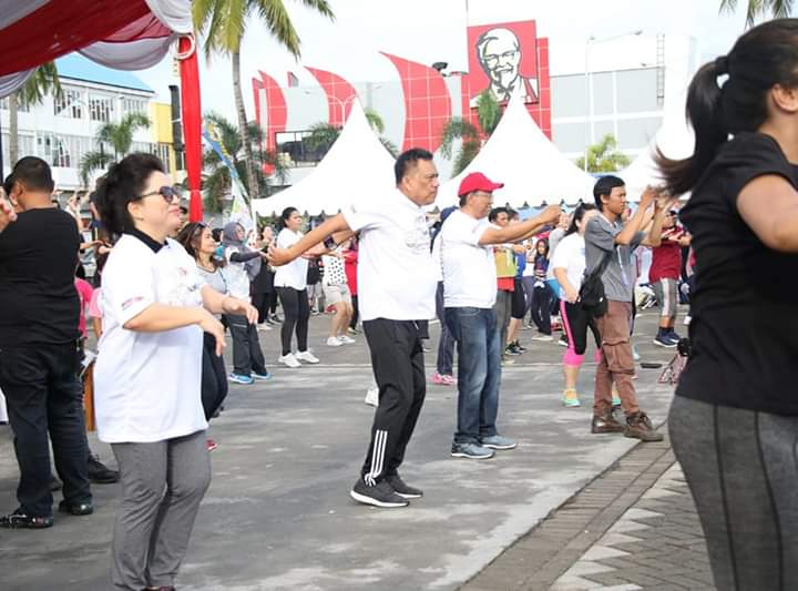 Sulut, detiKawanua.com – Gubernur Sulawesi Utara Olly Dondokambey senam bersama ribuan masyarakat Sulut dalam event Perwosi Family Fun Run 2019 yang digelar di Lapangan Basket Kawasan Megamas Manado, Sabtu (2/11/2019) pagi tadi.