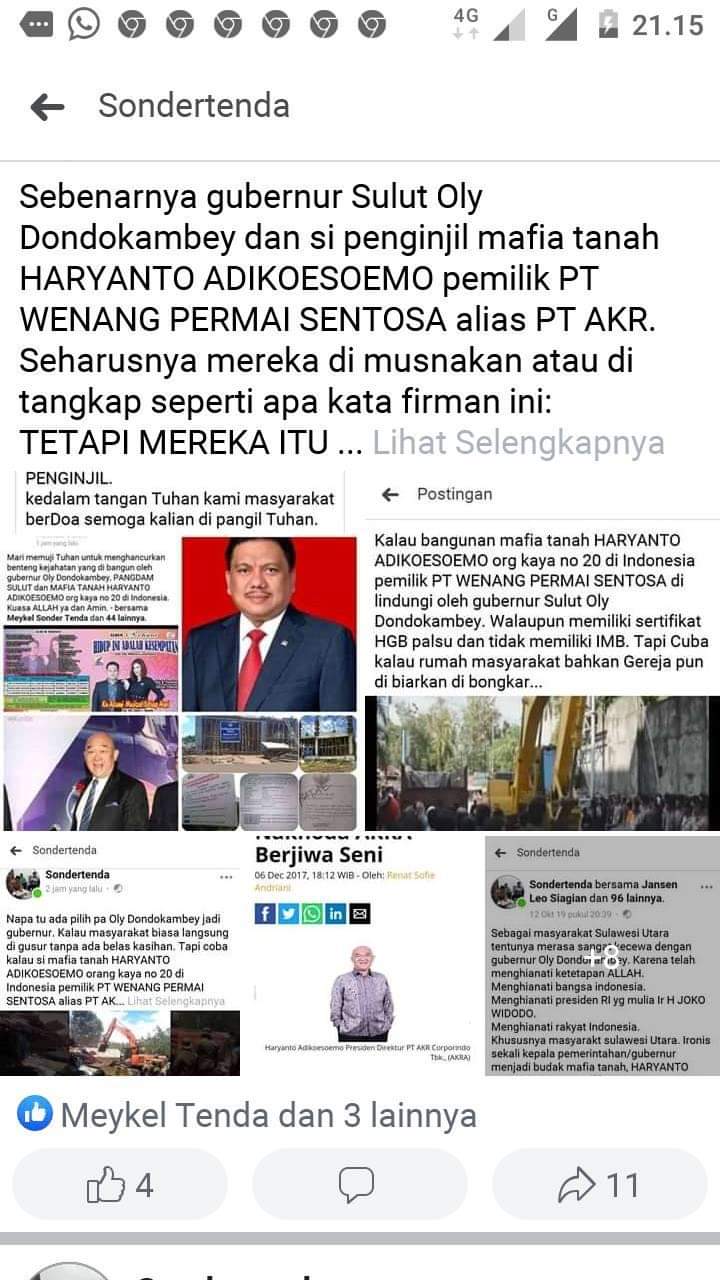 Diketahui kronologis postingan tertanggal 9 November 2019 dari Michael Lule dalam FB yang memakai nama/akun “Sondertenda” tersebut menuliskan “Mohon di usut Pangdam Sulut dan Gubernur Sulut Olly Dondokambey membeking pengusaha perampok tanah masyarakat. Buatlah negeri ini damai dan aman,hapuskan segala bentuk penjajahan dan penindasan”.